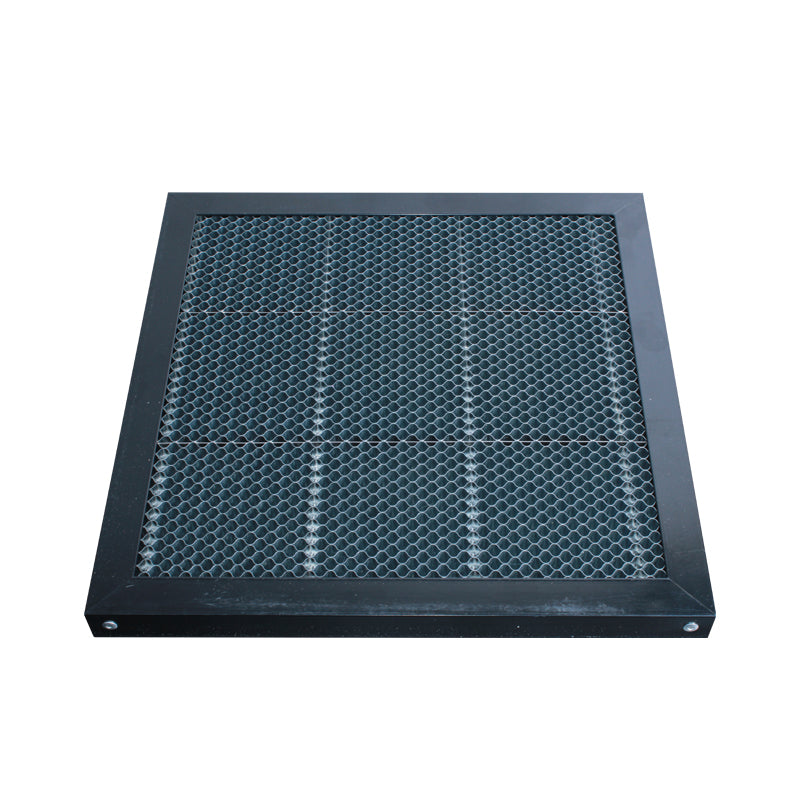 A mesa honeycomb (em colmeia) melhora a ventilação durante o corte e reduz reflexos indesejados do laser, resultando em cortes mais limpos e seguros.